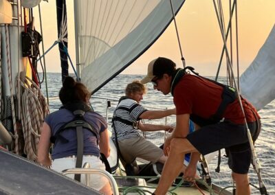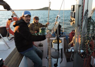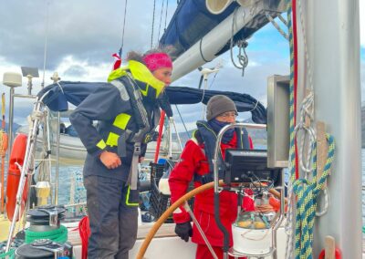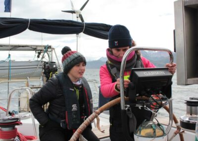 Karukinka est affiliée à la Fédération Française de Voile et propose des stages de navigation tous niveaux en Patagonie, Écosse et Norvège. Nous formons nos membres à la grande croisière, validons les carnets de navigation et transmettons des compétences variées (météorologie, mécanique, matelotage). Au-delà de la voile, nous créons des espaces de dialogue entre scientifiques, artistes, navigateurs et communautés locales, favorisant l’apprentissage collectif et l’émergence de nouveaux projets.
